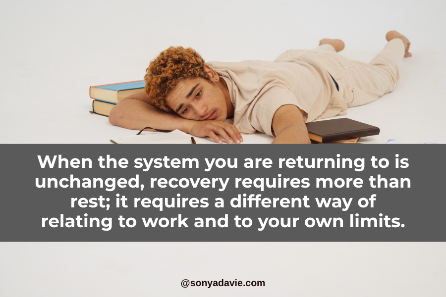 One of the most harmful myths about burnout is that a week off will magically reset everything. Without meaningful changes to workload, boundaries, and nervous system regulation, people often return from time off just as exhausted as before, and sometimes more discouraged.